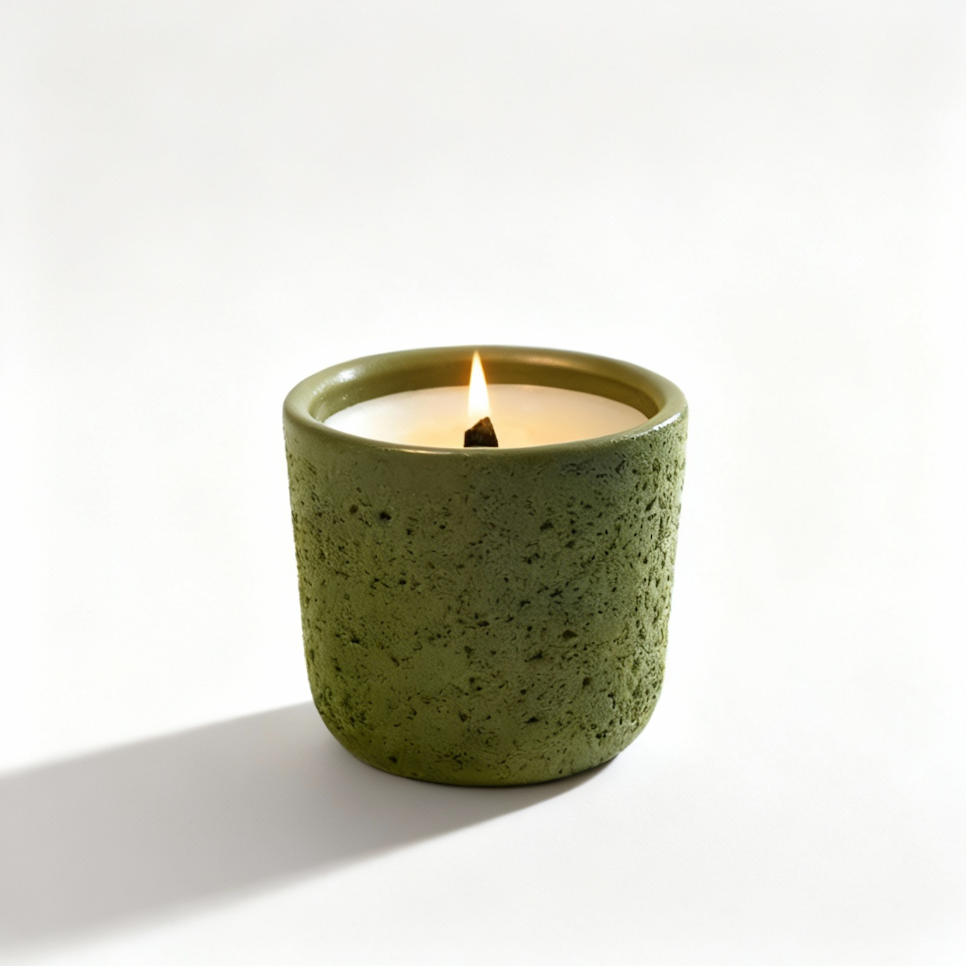 A sculptural candle crafted for both atmosphere and design, this piece combines natural soy wax, a crackling wood wick, and an artisanal lava-textured ceramic vessel. The earthy Icelandic moss scent brings a calming, grounded character to any interior.